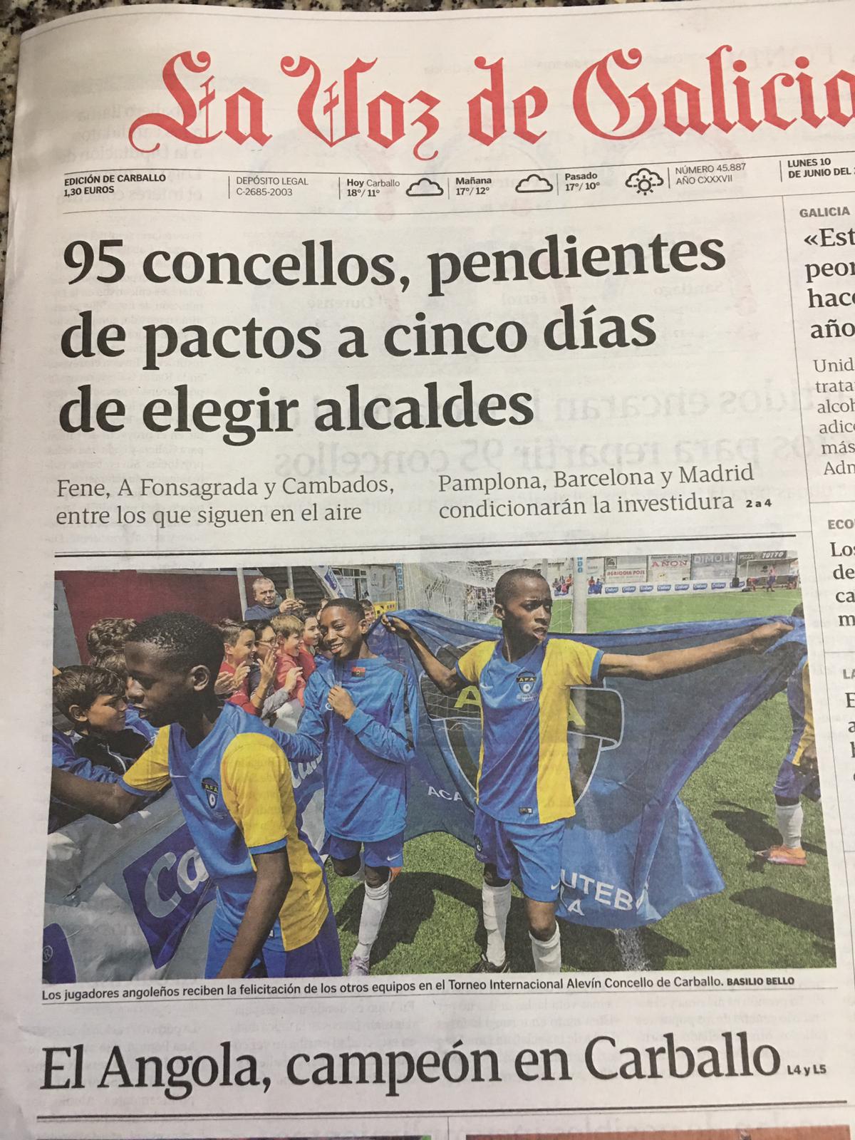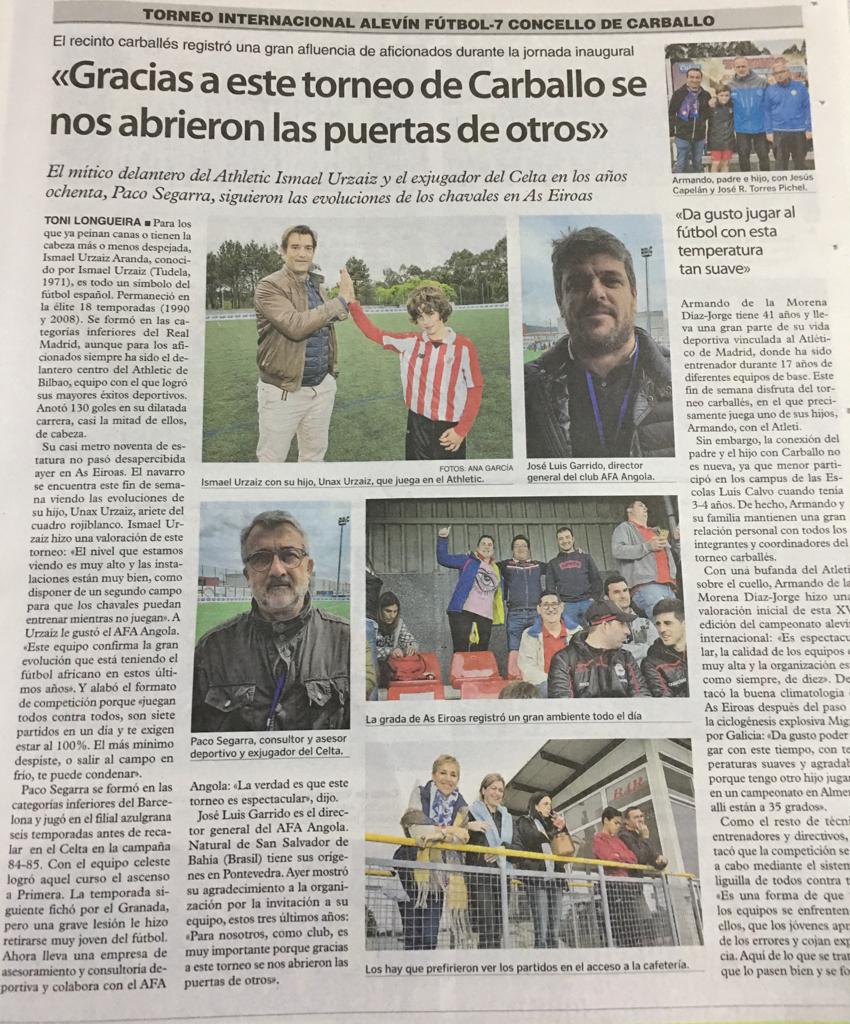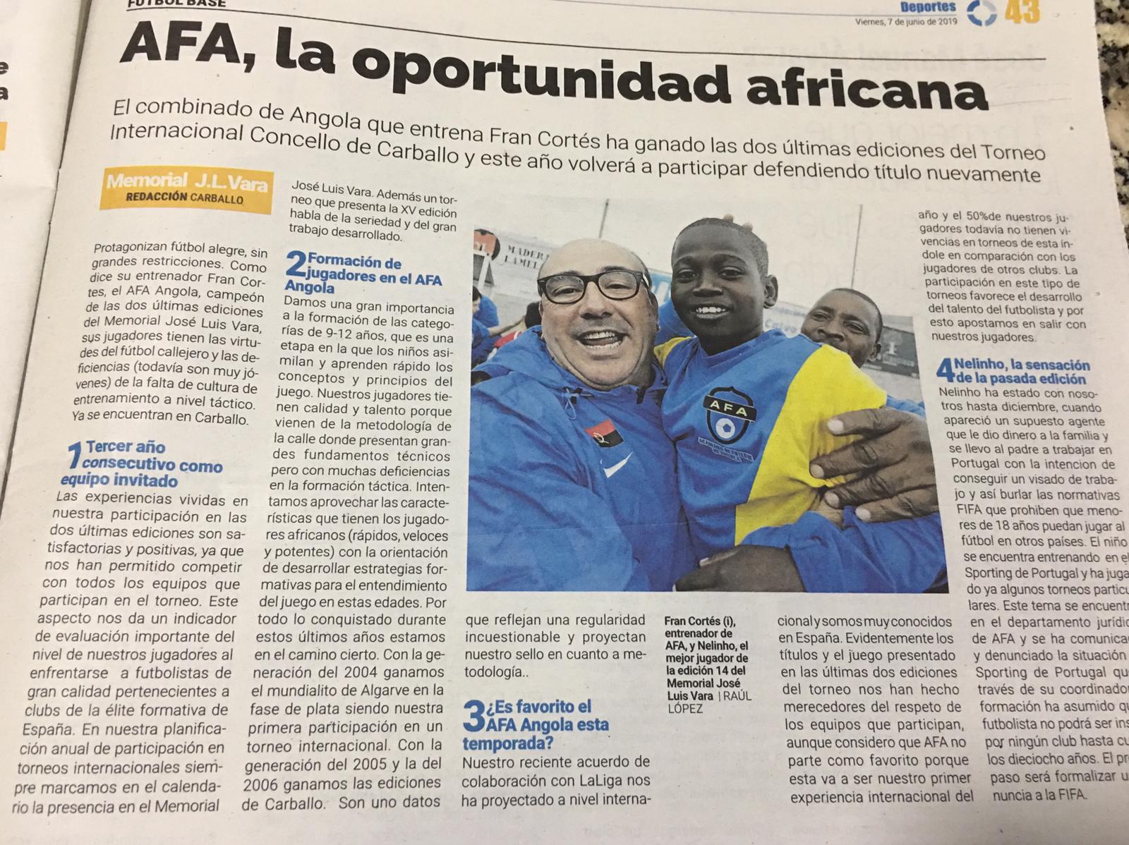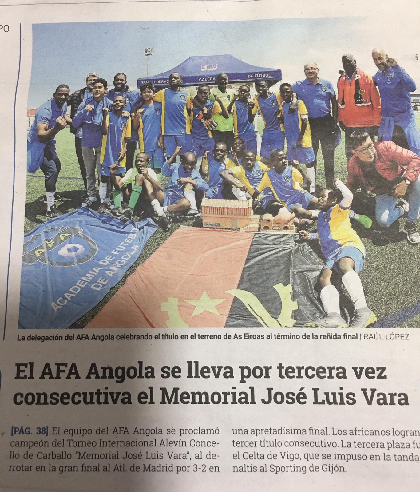 El equipo de la Academia de Futebol de Angola ha logrado por tercer año consecutivo el XV Torneo Internacional Concello de Carballo Memorial José Luis Vara Oliveira celebrado en la localidad coruñesa ganando en la final al Atlético de Madrid por 2-3. El equipo africano cuenta por victorias sus participaciones en este torneo donde ha competido en las diferentes ediciones con equipos de fútbol base de prestigio mundial como Real Madrid, Oporto, Atlético de Madrid y Real Sociedad entre otros.